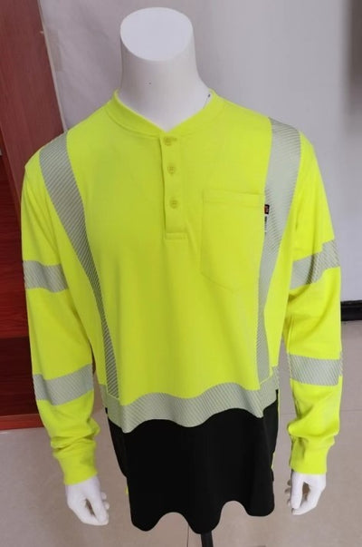 Flamesafe Long Sleeve Flame Resistant Hi Vis Henley Shirt, Yellow with Black Bottom Front