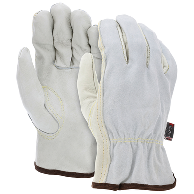 From wranglin' to buildin', these gloves are tough for the job! Cowhide is the most commonly used leather due to availability. Characteristics include a good balance between abrasion resistance, dexterity, durability and comfort. The 32057 unlined drivers gloves features: CV Grade Cow Grain palm for excellent strength, split leather back, and is sewn with DuPont Kevlar thread. Other features include a shirred elastic back which offers enhanced fit and safety, cotton hem, and a keystone thumb pattern.