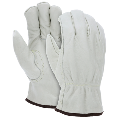 From wranglin' to buildin', these gloves are tough for the job! Cowhide is the most commonly used leather due to availability. Characteristics include a good balance between abrasion resistance, dexterity, durability and comfort. The 32801 drivers gloves feature; thermal lined CV grade cow grain leather, shirred elastic back, cotton hemmed, and a keystone thumb pattern.