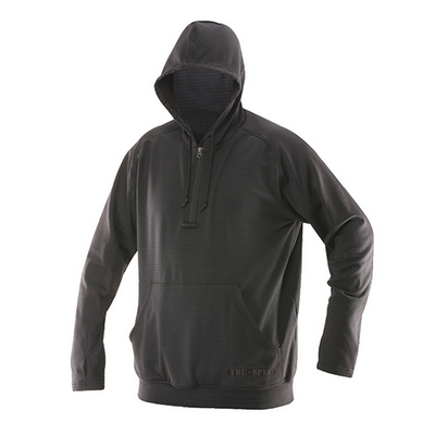 Who doesn't love a nice warm hoodie on a cool day? This mid-weight pullover style hoodie is just the answer when there is a chill in the air. Constructed from plaited grid jersey knit 94% polyester/6% Spandex fabric with a 1/4 zip front zipper and front kangaroo pocket.