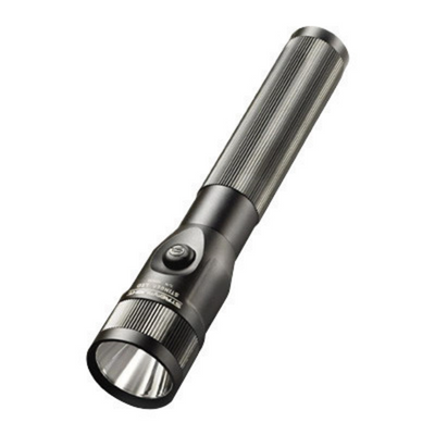 Streamlight Stinger LED rechargeable flashlight - now available with new Smart chargers with fast charging times. Streamlight Stinger LED, with a beam range of 1,017 feet, is a professional grade rechargeable flashlight - perfect for law enforcement, security, building inspectors, pest control and the home user who wants a reliable well-built LED flashlight. The Streamlight Stinger LED has a durable aluminum body with rubber grip. The switch on the Stinger LED is located toward the head and is easily activated with your thumb. Just press for on or off; press and hold to change the brightness level. Charging is easy for the Stinger LED. Just snap the flashlight into the charge bracket - no need to remove the battery for charging.