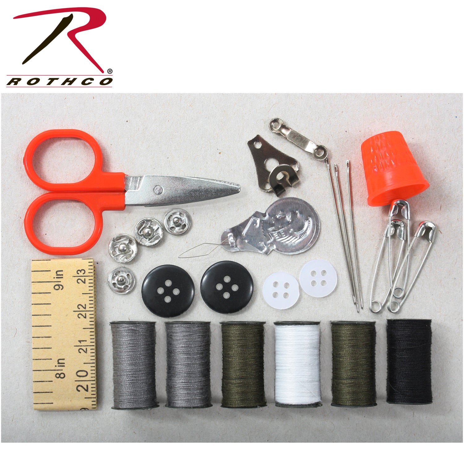 Rothco's G.I. Style Sewing Kit is the perfect addition to your camping or bug out bag. This sewing kit comes with scissors thread, thimble, buttons, snaps, and more. Comes in a military style pouch for easy and secure storage.