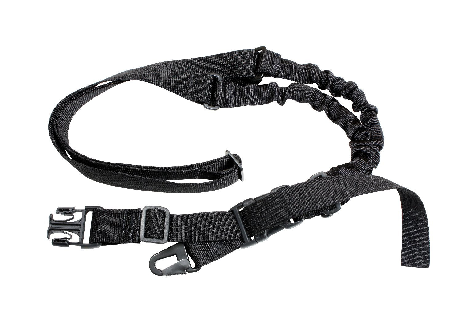Enhance your tactical gear collection with Rothco’s Single Point Rifle Sling. Constructed with nylon webbing, this single point harness features fully adjustable shoulder straps and dual bungee cords to help reduce bouncing and enhance retention of your firearm. Easily attach or remove your single point bungee sling from your rifle with the quick release buckle and metal spring clip. The single point bungee sling’s length can be adjusted from 42” – 64”; allowing each user the perfect fit while using their firearm.