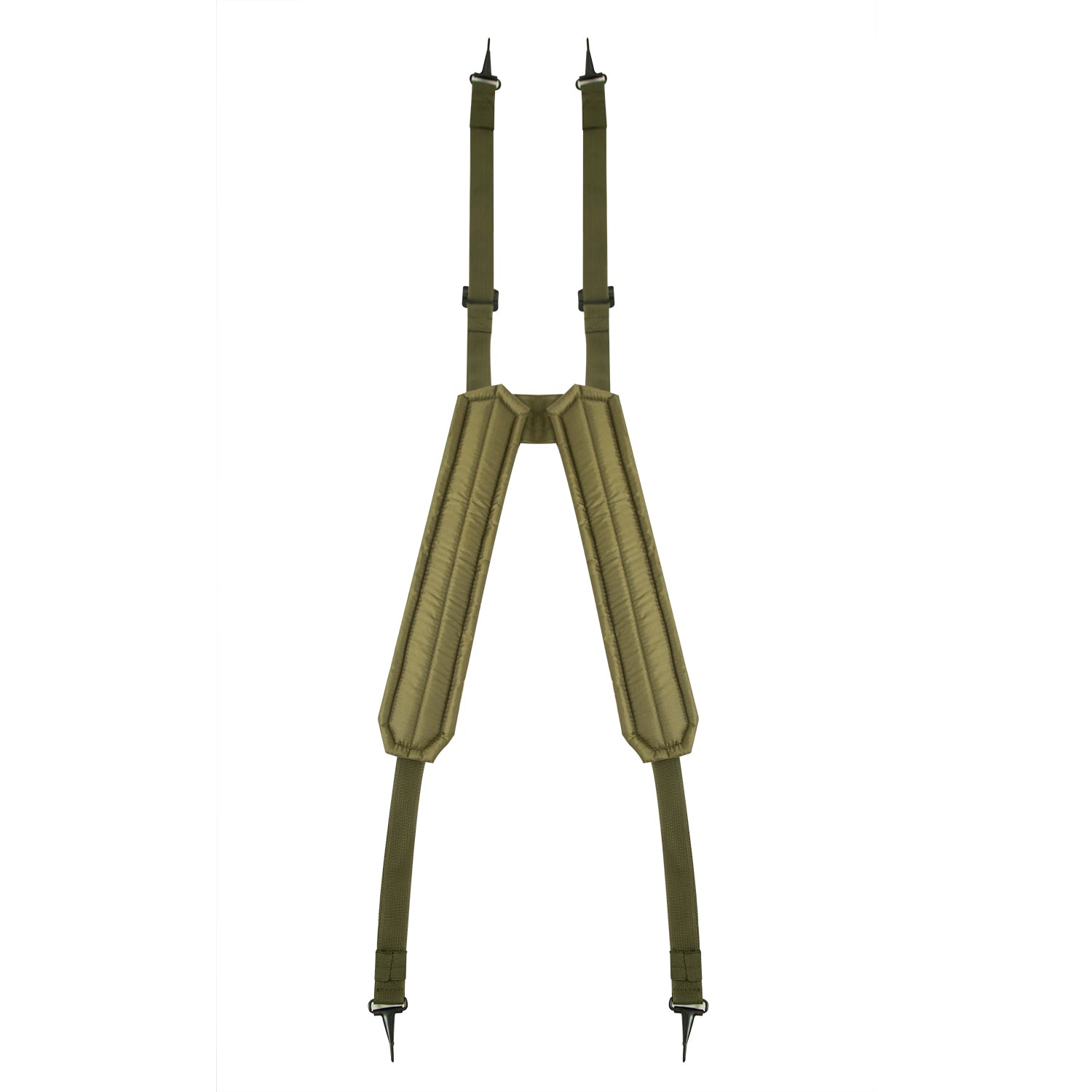 Rothco’s G.I. Type “H” Style LC-1 Suspenders are a Vietnam-era military staple that help evenly distribute your ALICE pack load. The ALICE compatible suspenders attach to your gun belt or butt pack to support your loadout. A four-point suspension system distributes heavy loads for easy carrying. Two D-Rings and a single row of MOLLE webbing on each strap allow for additional attachments, and metal clips at the bottom for attaching a butt pack or sleeping bag carrier. The suspenders feature a lightweight regulation web construction.