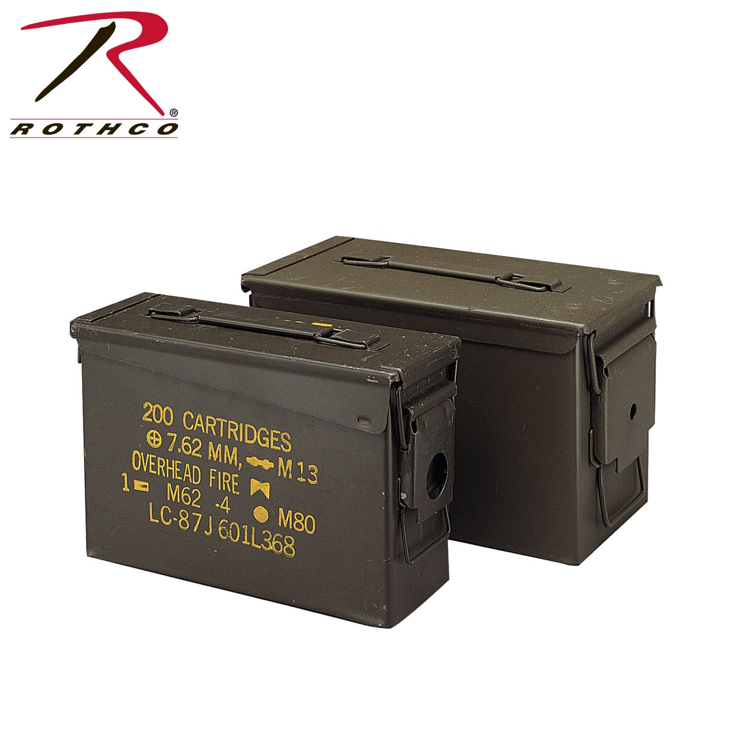 These GI .30 & .50 Caliber Ammo Cans are a must-have for any US Military or firearm enthusiast. Ammunition cans are ideal for portable storage of your ammo or essential survival supplies. This ammo container has a collapsible handle for efficient on-the-go carry and easy storage. Ammo cans feature a hinged lit with tension clamp closure to secure your gear or ammo. Used military ammo cans come in varied conditions and are a classic piece of military surplus.