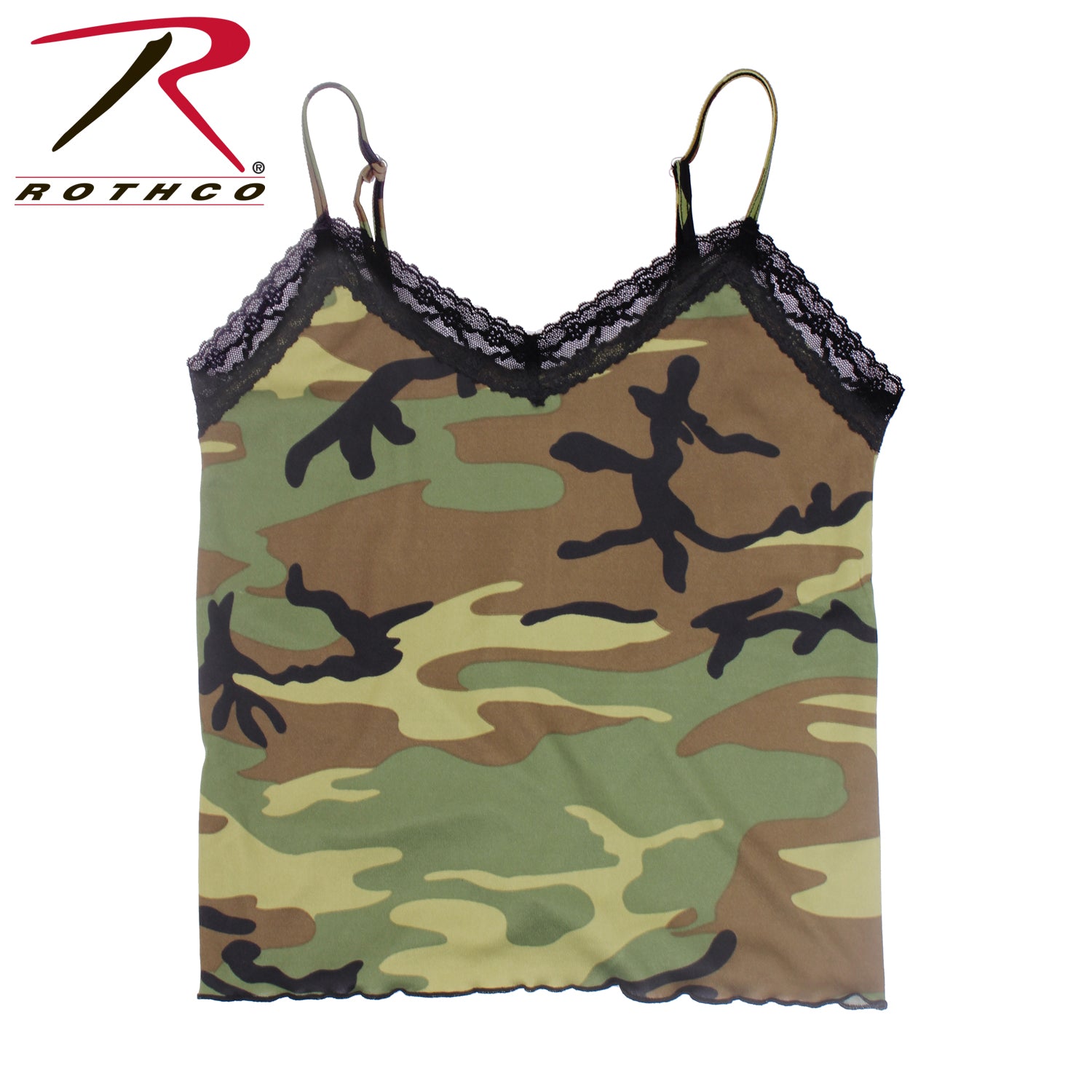 Rothco’s Womens Lace Trimmed Camisole features a soft fabric printed with our popular woodland camo pattern. The V-neck style camisole is trimmed with black lace that continues all the way around to meet in the back; the straps are easily adjusted for a custom fit.