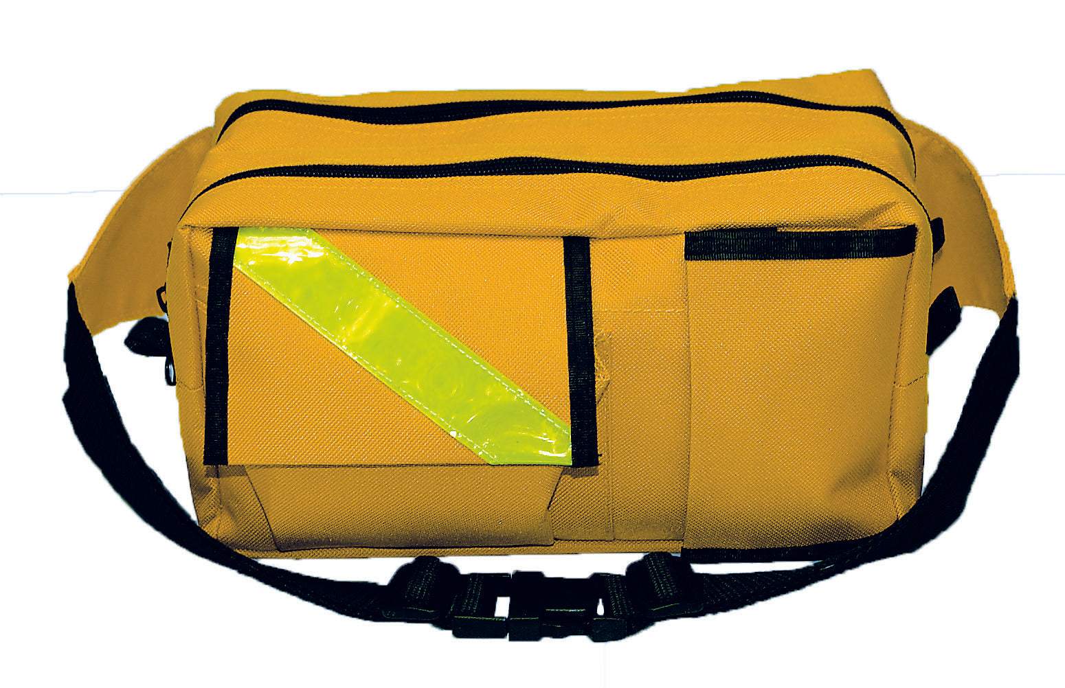 EMI's Rescue Fanny Packs can carry your personal protective equipment or your basic response supplies. Made of 1000 Denier Cordura the Fanny Pack has three roomy outside pockets which can hold shears, instruments, penlight, window punch, pager, gloves etc. It also has two large inside pockets which can hold EMS supplies and small rescue equipment. The adjustable nylon webbing can fit 20'' to 54'' waists and has a quick-release buckle. Ideal for handsfree response. Fanny packs have reflective trim on front pocket.
