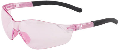 The ERB Grace Safety Glasses are frameless wraparound safety glasses that meet ANSI Z87.1 standards for high impact protection as well as provide 99% UV protection. Added rubberized temple tips and integrated nose pads help to make these stylish pink safety glasses incredibly comfortable to wear, while ensuring a secure fit.
