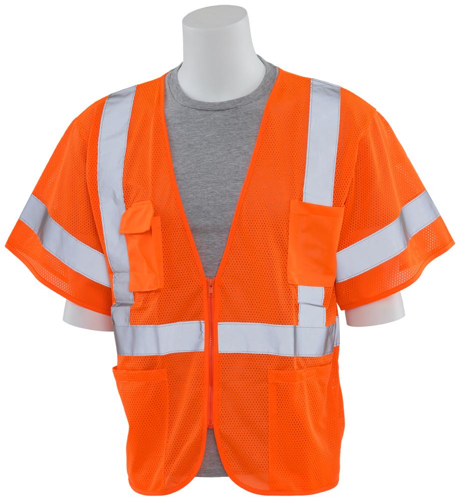 The ERB S6631P ANSI Class 3 Safety Vest is an economical, comfortable, and versatile high visibility mesh safety vest. Constructed of comfortable 100% Polyester Mesh with zipper front closure, this high visibility safety vest features both horizontal and vertical reflective tape for increased visibility and meets ANSI Class 3 standards. This economical safety vest also features one waist pocket with hook and loop closure for storage.
