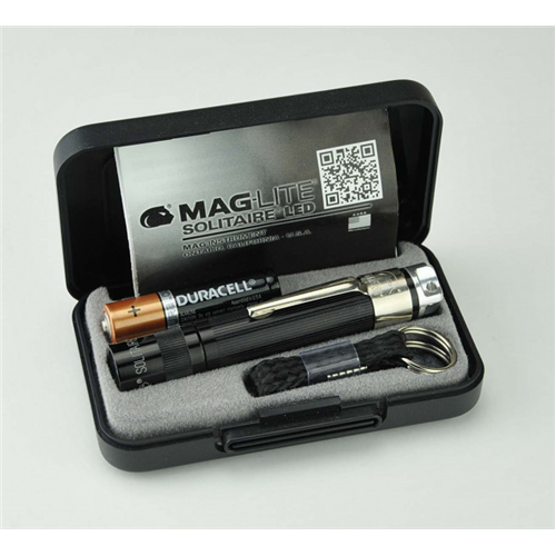 Like other Maglites, the Solitaire is machined from lightweight aluminum, anodized for enhanced corrosion resistance, and manufactured in the United States. Tiny in size, the Solitaire is IPX7-rated, meaning it is highly water- and impact-resistant to 6.6'. A simple twist of the light head turns it on and off and adjusts its beam between spot and flood.