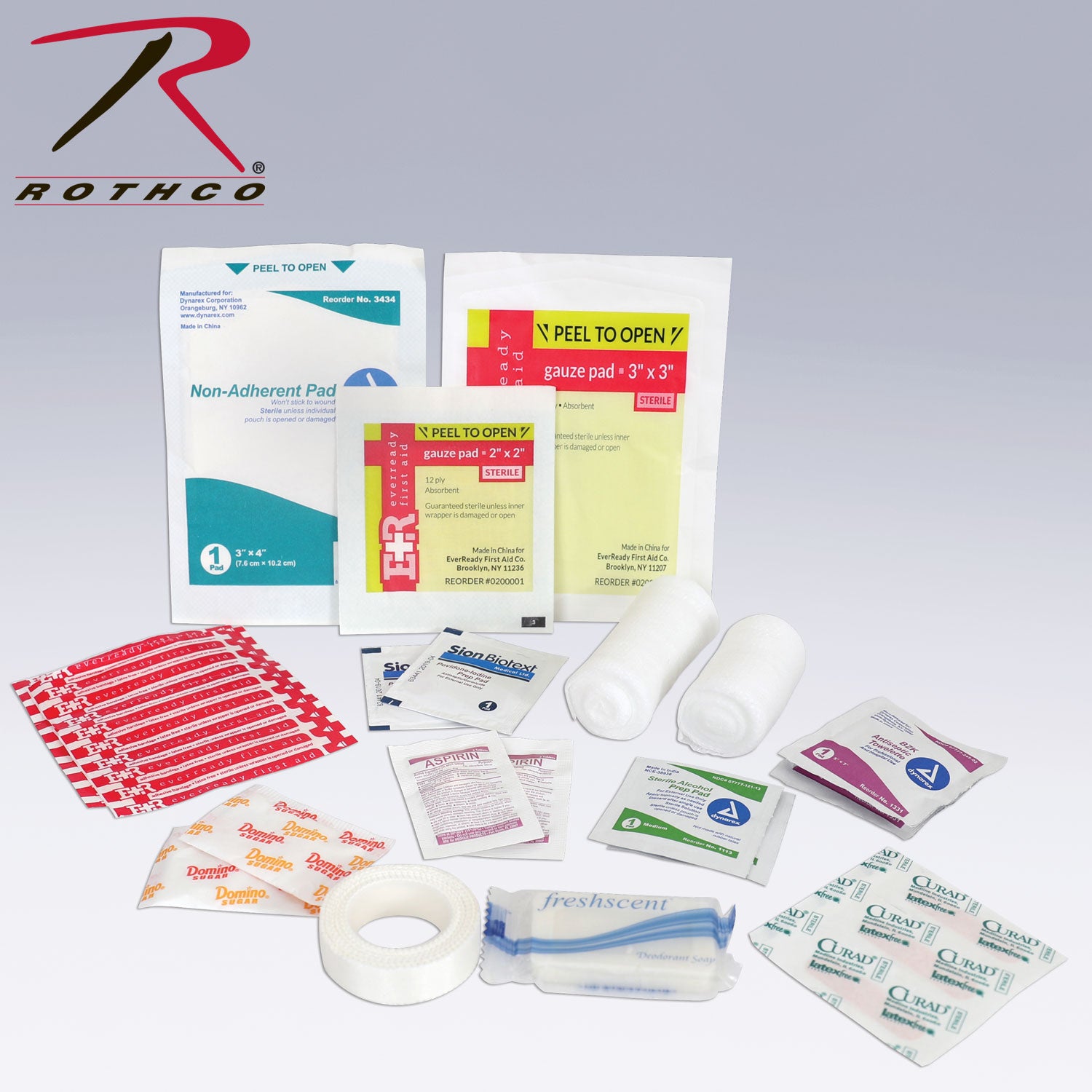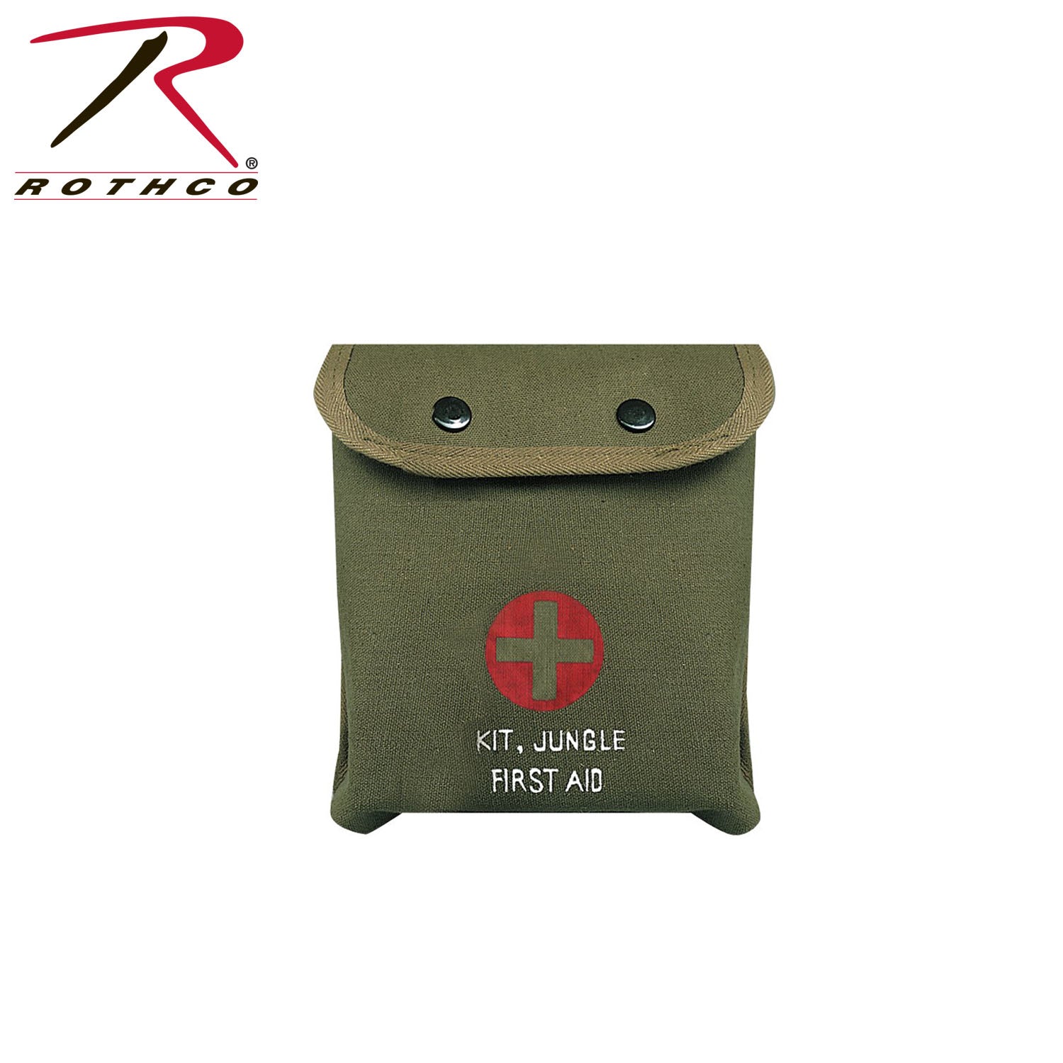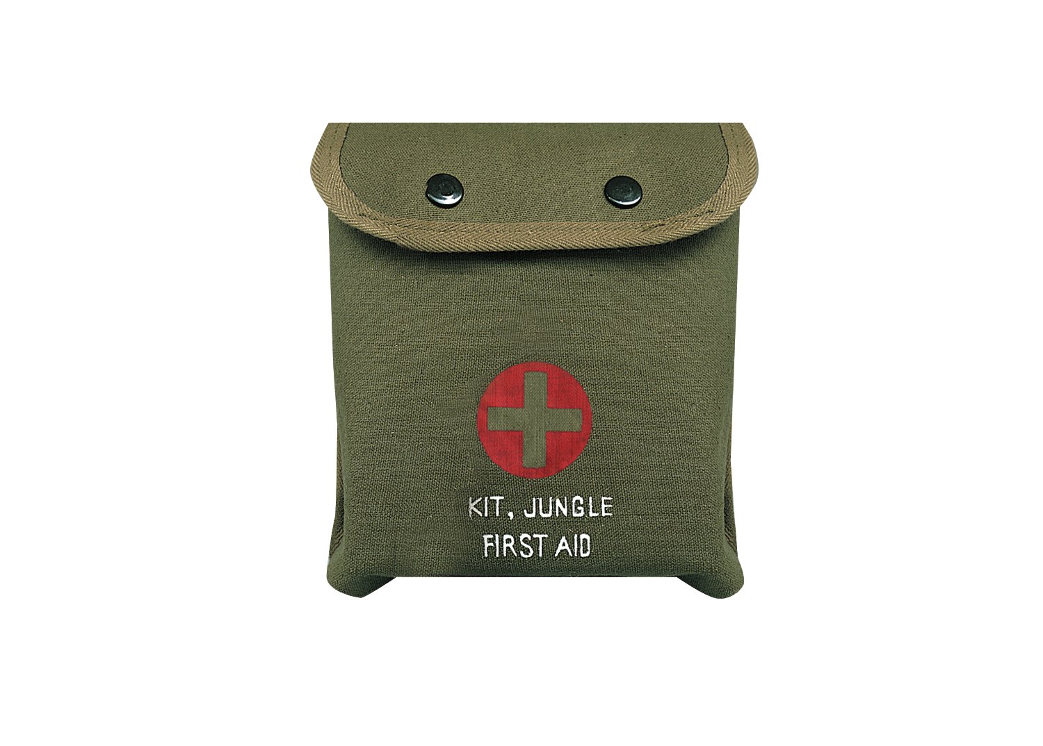 Rothco’s M-1 Jungle First Aid Kit Pouch comes fully equipped with essential first aid items. The First Aid Kit Pouch is constructed with durable canvas material and is made portable with belt clips. The double buttons on the front of the pouch allow for secure closure. This compact first aid kit measures 5 ¼” wide and 5 ½” high.