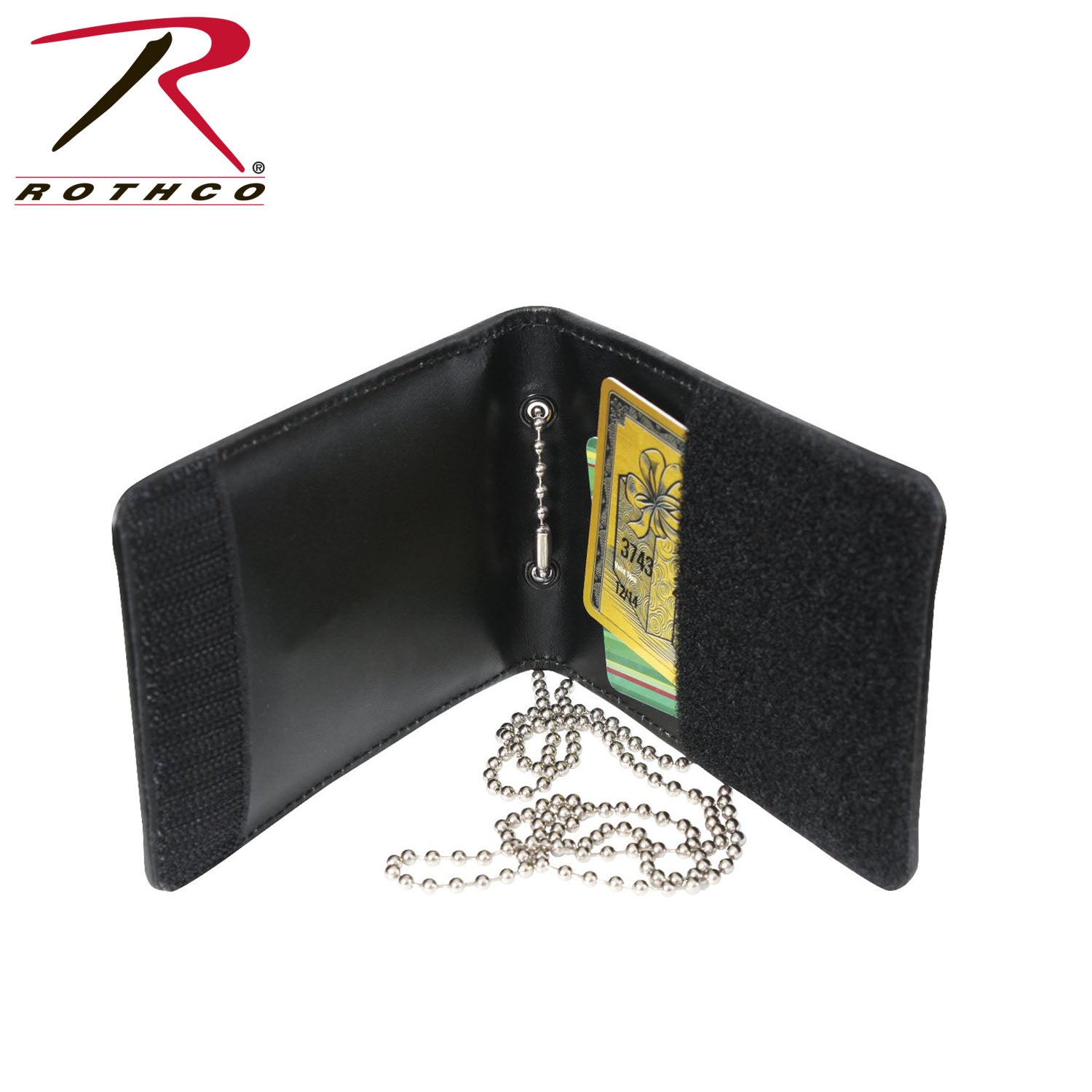 Rothco’s Neck ID Badge Holder makes it easy to keep your badge on you at all times. The ID Badge Holder features a leather bi-fold design with a secure hook & loop closure, a clear window for an ID card on one side and a cutout on the opposite side for the badge. The inside of the ID holder has a slot to store credit cards or money as well. In addition, the leather badge holder features a 33-inch chain that allows you to wear it around your neck, which can be kept in a small pocket on the inside of the holder. For even more added convenience, the Rothco ID Badge Holder can be worn on a belt. Please note badges are not included.