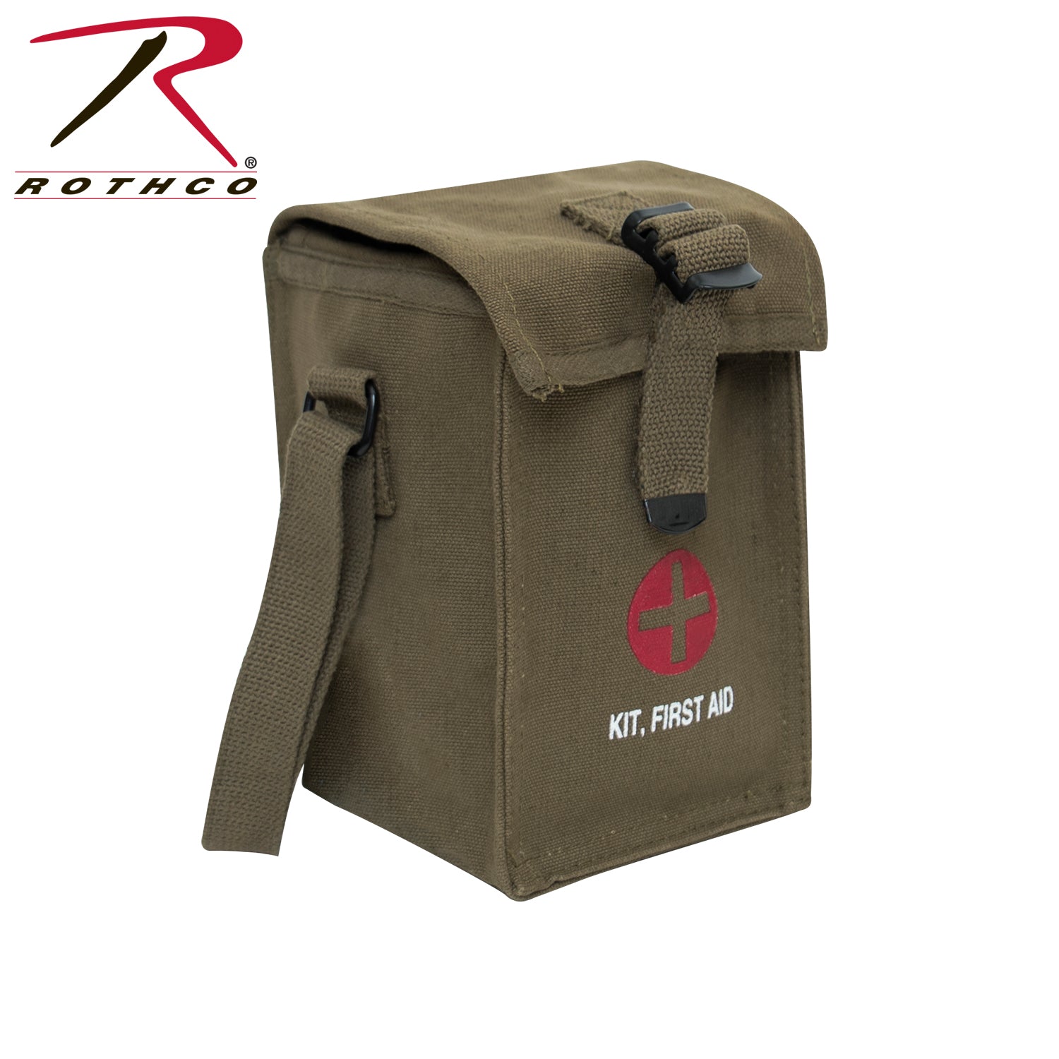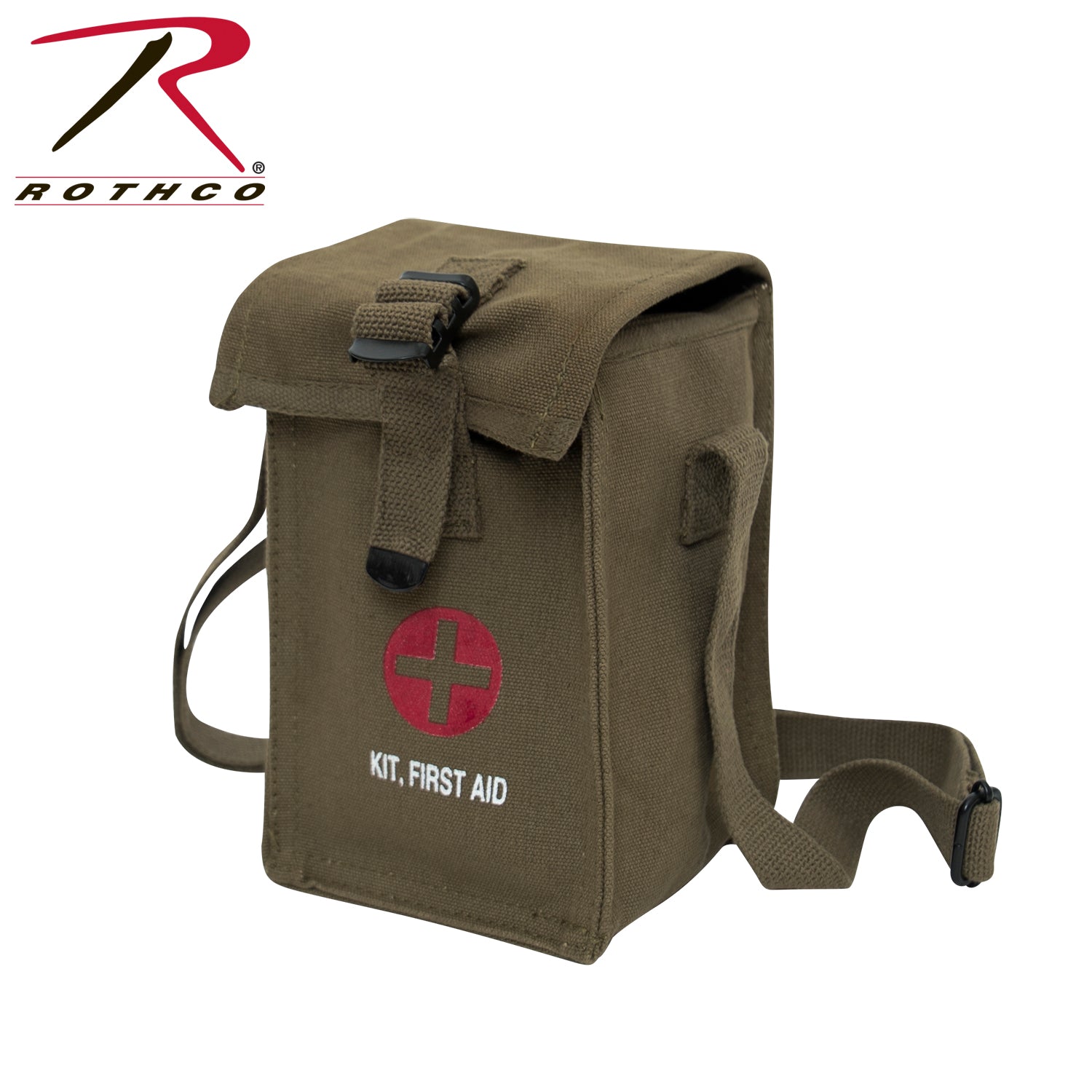 A rugged military-style shoulder bag filled with a multitude of essential first aid items and gear.