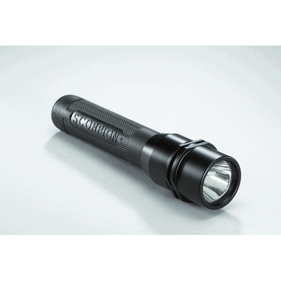 The Scorpion LED is a compact and lightweight tactical flashlight. This high-performance flashlight also features an enhanced rubber-armored sleeve for a secure grip in any environment.